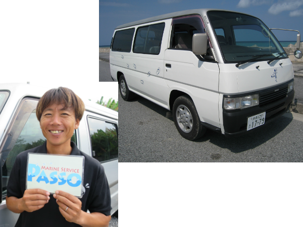 上原港に着きましたら「PASSO」の看板をもったスタッフがお待ちしておりますので、お声をお掛け下さい。